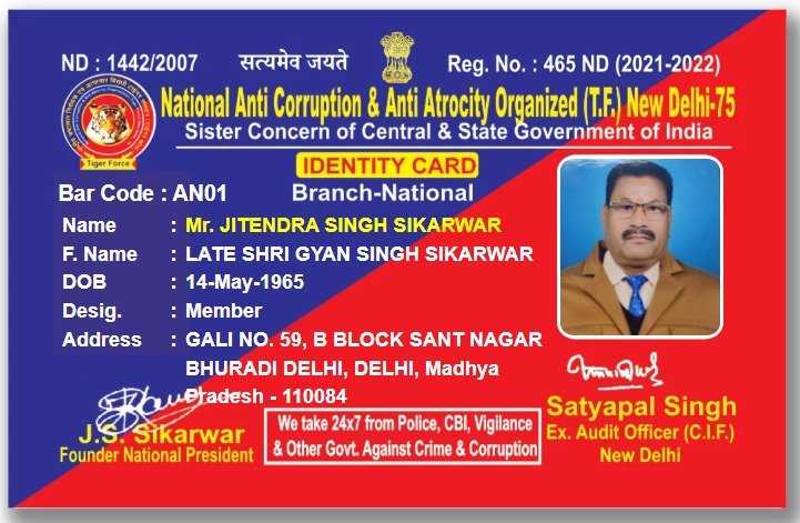 National Anti Corruption and Anti Atrocity Organization (T. F.) New Delhi 75